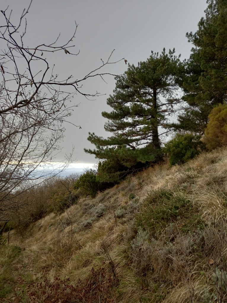 Battista mi parla di questa grande opera di riforestazione e mi indica vari tipi di conifere, introdotte in fase sperimentale, alcune inibite nel loro accrescimento da un terreno poco adatto alle loro caratteristiche