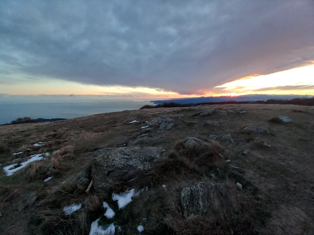 Lasciamo il Monte Beigua, mentre un magnifico tramonto, incendia il cielo.