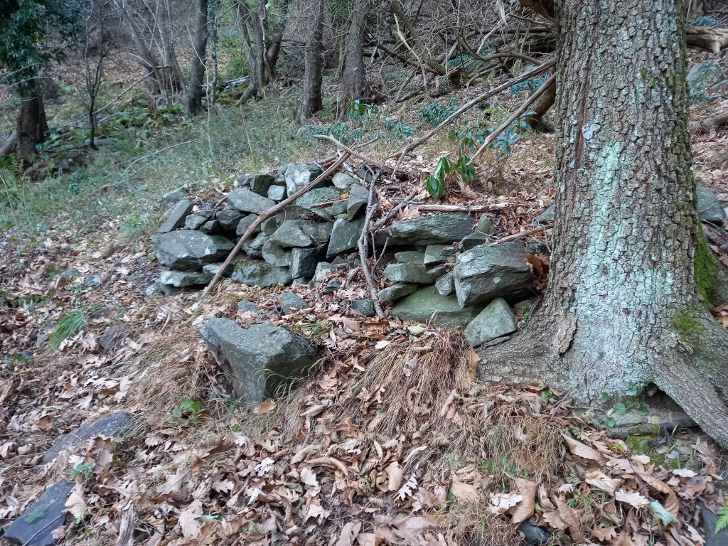 Qui, su questo ripido pendio, ho fotografato, almeno una trentina di cumuli di pietra, ben squadrati, alti circa un metro, posti a distanza regolare gli uni dagli altri.