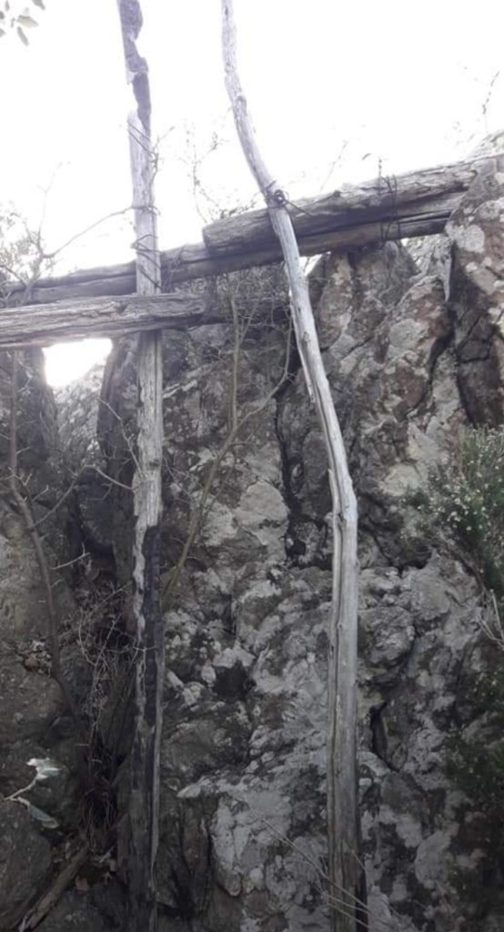 Fra queste rocce si trovano, residui di baraccamenti e i resti di un lungo cavo d’acciaio, di una teleferica, un mezzo di trasporto per la legna o altro materiali