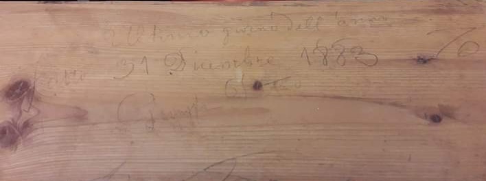 …”fatto ultimo giorno dell’anno 31 dicembre 1883 Giuseppe” Scritto con il lapis su questa lastra di legno di castagno, trovata mentre restauravo un mobile, ci porta in un altro mondo quasi 150 anni fa, dove non si celebravano come oggi i fasti di fine anno.
