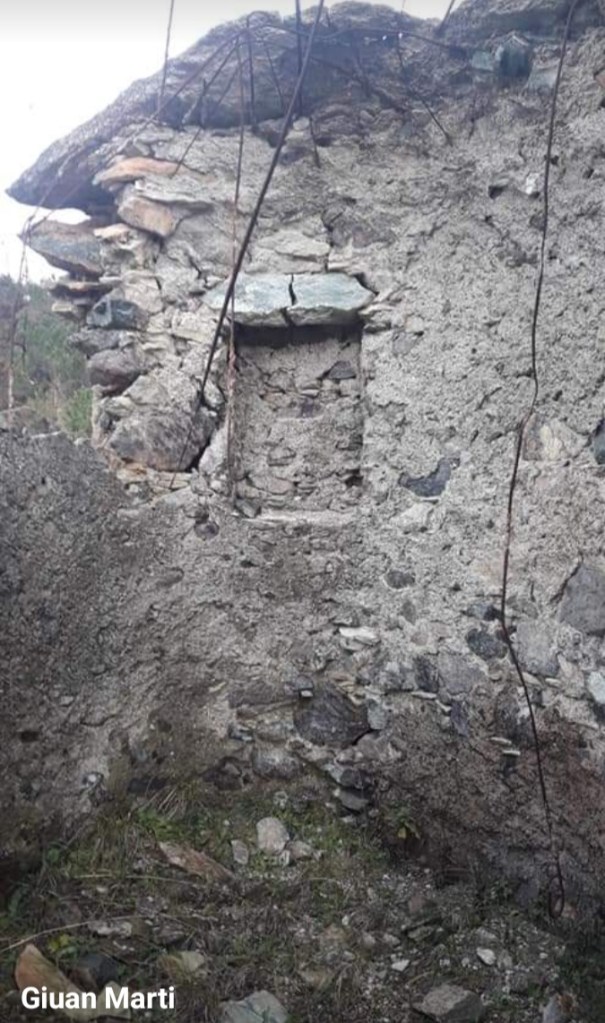 Nella ricerca da gescia, ho sbagliato più volte direzione, sono passato molto vicino, alla costruzione, che stavo cercando, ma era celata alla vista dalla vegetazione, che su questi monti è del tipo sempreverde, molto fitta e con estese colonizzazioni de ruvei, rovi.