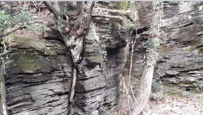 Non bisogna fare molta strada, per trovarsi al cospetto di un enorme blocco di scisto, colonizzato dal muschio e dal capelvenere, poi oltrepassate questa parete rocciosa e altre carcasse di alberi, si arriva al cospetto di una meraviglia della natura!