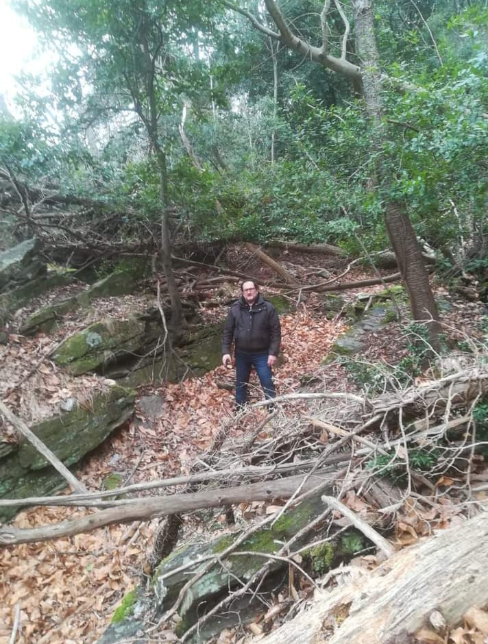 Detto fatto, lo stesso giorno della telefonata, nonostante il cielo minacci pioggia, ci avventuriamo, lungo un pendio, molto acclive, contrassegnato da molteplici carcasse, di alberi caduti, causa vento o soffocati dall’edera,( questa pianta parassita sta piano piano sostituendo l’apparato fogliare degli alberi nei nostri boschi)