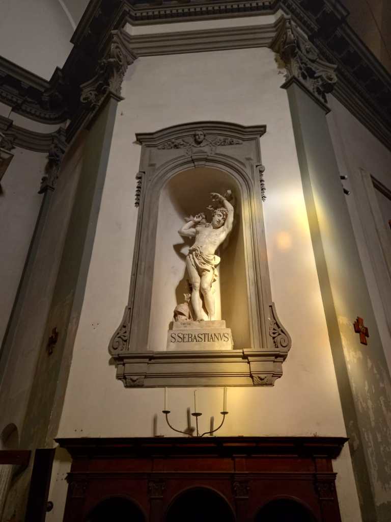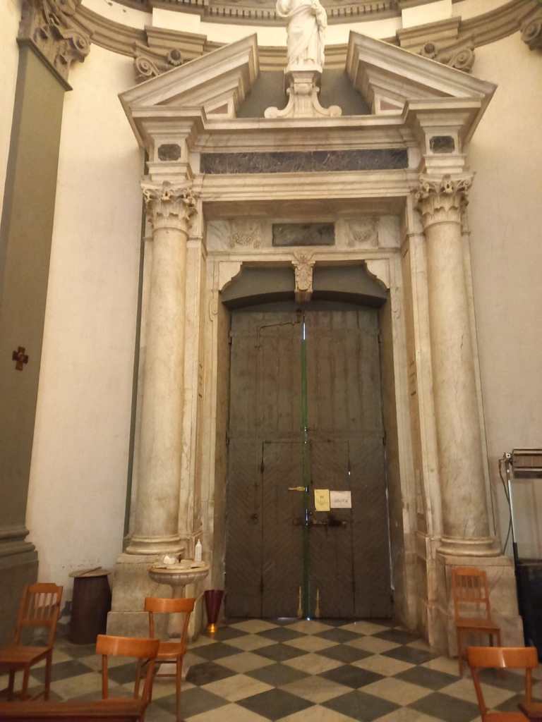 Entriamo nella navata e Don Paolo mi illustra le curiosità di questa Chiesa, disposta a doppia croce greca, con i suoi altari provenienti dalla chiesa di S.Lorenzo di Genova.
