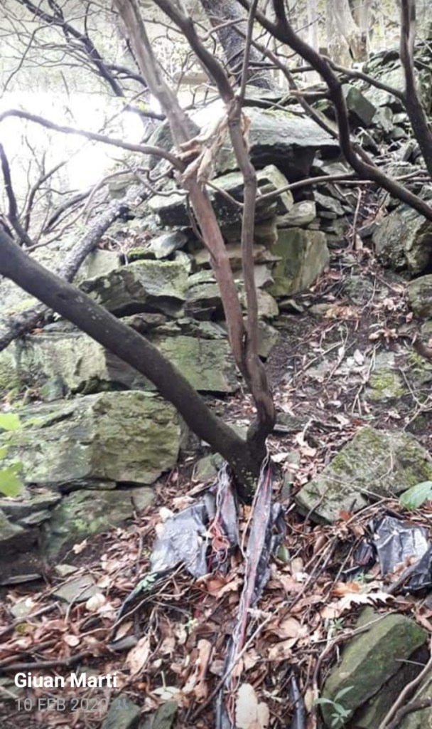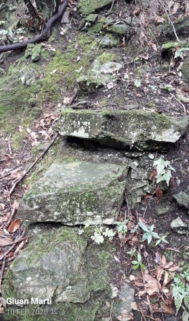 Era largo almeno un metro e seguiva l’andamento del crinale, nella sua parte superiore in prossimità di una strada, se ne perdevano le tracce è molto probabile che le pietre mancanti,sono servite, per costruire a Ca du S. Martin.