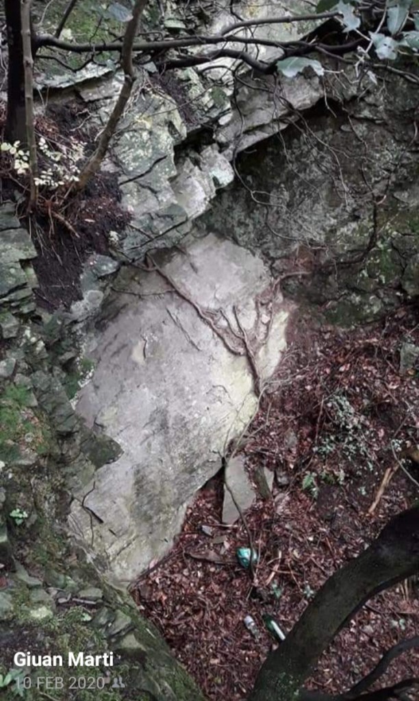 Ma questo spiazzo creato fra le rocce, a fine anni 80, fu il luogo di atterraggio di un’auto, che volata fuori dalla soprastante sede autostradale, il Viadotto Teiro Nord, si capovolse urtando contro i ersci, querce, sottostanti, le quali rallentarono e deviarono, con la rottura di alcuni grossi rami, la traiettoria della vettura, facendola arrestare in una posizione molto particolare, capovolta con le ruote all’aria.
