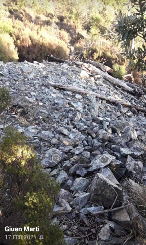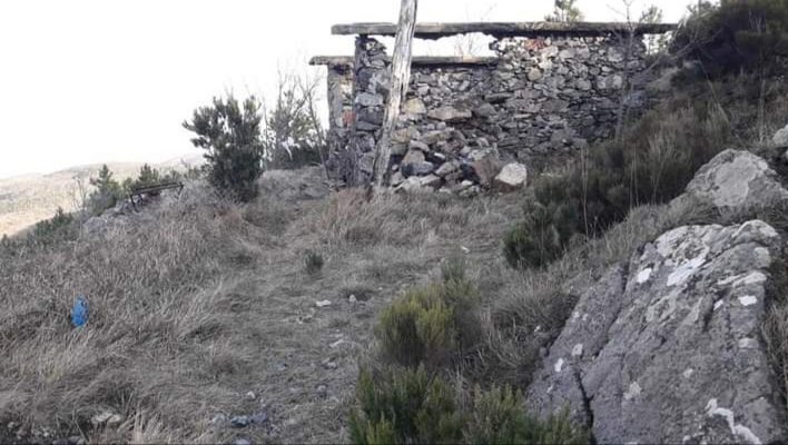 Come si evince dalle foto è enorme la discarica di risulta dello scavo, un muretto in pietra, in parte diruto, proteggeva l’ingresso del rifugio, l’abitato di Varazze è ben visibile da questa postazione.