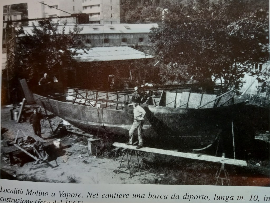 In tempi più recenti, sempre nella zona del Mulino a Vapore, c’era l’officina meccanica Toso, specializzata nella costruzione delle ruote idrauliche e i vari meccanismi per mulini frantoi cartiere del sciu da Teiru.