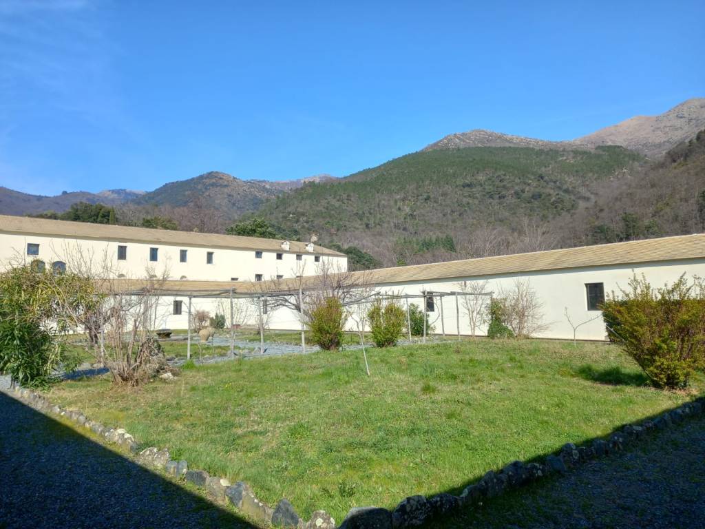Passò u Rian de Prialunga, si arriva nella bella zona terrazzata de Bosan, all’inizio del tratto in discesa, si erge il poderoso sbarramento murario, dell’Eremo del Deserto.