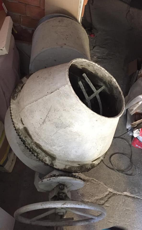 Tutto era pronto quella mattina, nei giorni precedenti avevamo accumulato nel magazzino, dove era prevista la costruzione del muro, una quantità impressionante di mattoni, 1600 mattoni multifori da 16 era una bella catasta, non da meno il cumulo di sabbia, sacchetti di calce e cemento, per fare la malta e poi c era la fedele betoniera, di cui allego la foto, compagna di tanti lavori, con il suo particolare rumore, tipico di ogni impastatrice.