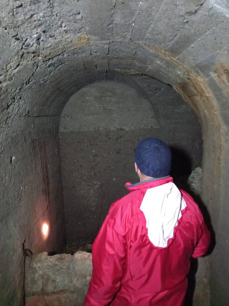 Il tunnel ci accoglie con un buio totale e un’umidità esagerata, che appanna subito i miei occhiali e mi obbliga a proseguire nella visita, senza l’ausilio delle lenti.