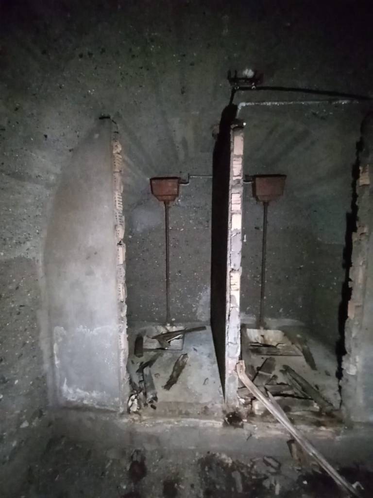 Il primo è un vano doppio, dove sono ubicati i servizi igienici, con turca vaschetta e soprastante tubo di areazione.