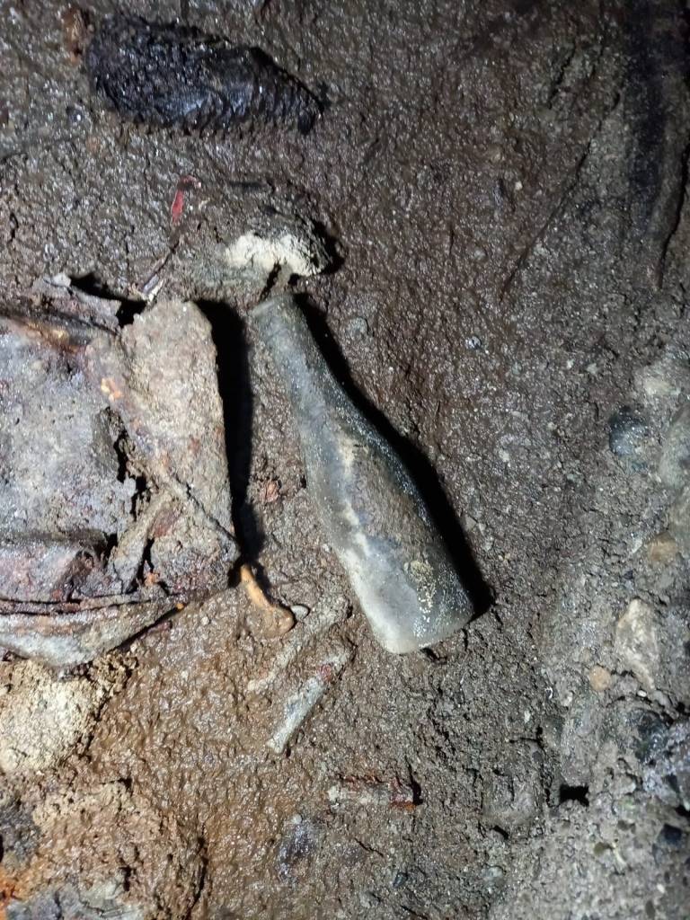 Fotografo quelli che possono essere gli oggetti abbandonati in questo rifugio, da chi usufruiva di questa struttura, una lampadina, i resti di quello che secondo Tonino, era uno strumento musicale a fiato, bottiglie, scatole di conserva e quel vasino per i bisogni dei bambini, chissà chi lo avrà dimenticato, poi ancora residui marciti, di serramenti in legno e un cumulo di vetri rotti