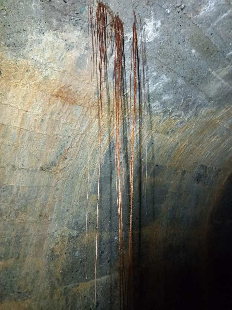 I resti di un impianto elettrico, percorrono tutta la volta delle gallerie, dove sono rimaste le staffe e qualche isolatore