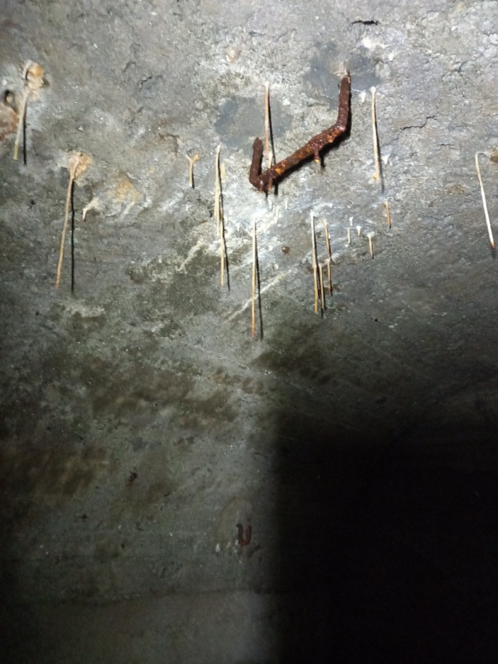 La struttura è in cemento armato, perfettamente integra, con assenza di infiltrazioni d’acqua ( ma visto il periodo di siccità è probabile che ci sia qualche stillicidio d’acqua in caso di acquazzone)