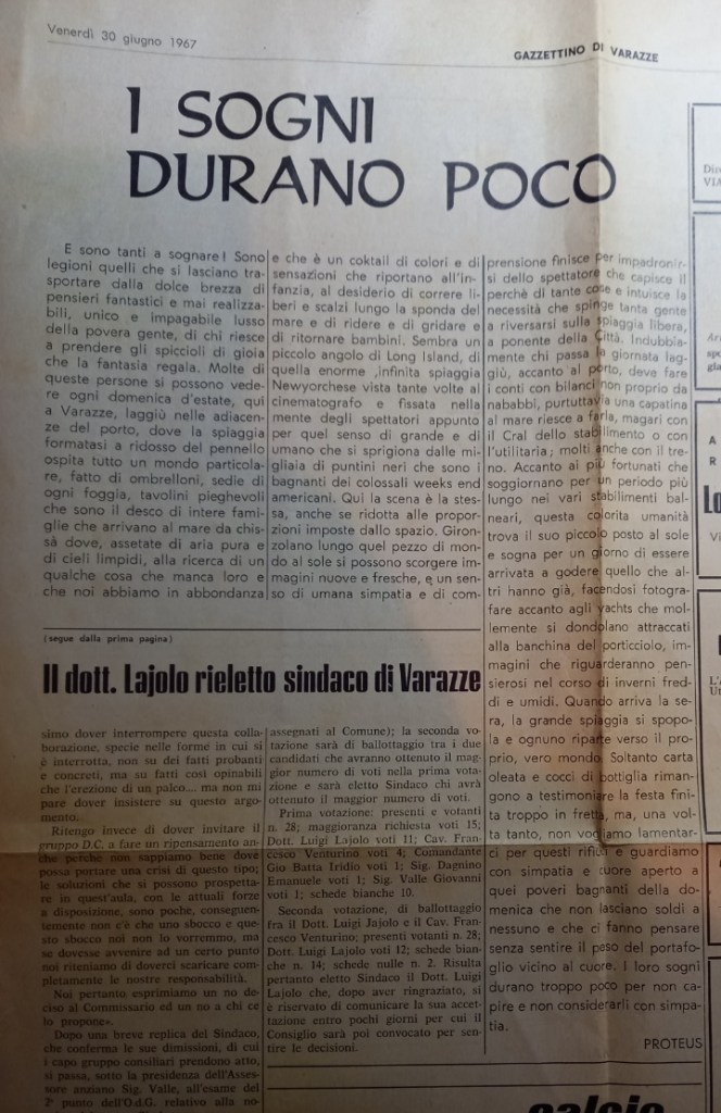 Tratto dal Gazzettino di Varazze del 30 giugno 1967 Collezione Parodi