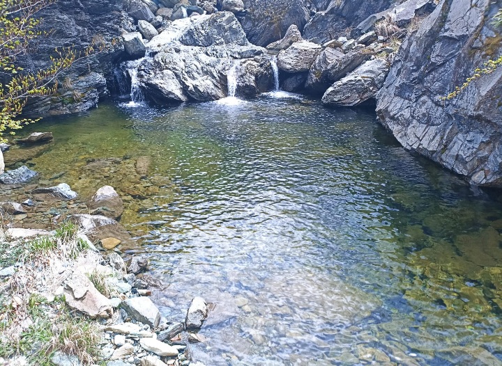 Da questa zona è arduo scendere lungo il letto du Rian da Biscia, per arrivare al ruscello, è necessario effettuare un ampia deviazione e guadare il corso d’acqua, diverse volte, saltando da un masso e all’altro, cercando ogni volta il giusto percorso, in un dedalo di pietre e rivoli d’acqua.