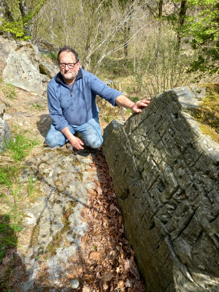 Con Cesco, siamo alla ricerca da Pria Liscia, dove sono incise numerose orme di piedi, che secondo gli studiosi, l’associazione piede fonte – sacra è stata imitata dal cristianesimo, nel rito del lavaggio dei piedi, del giovedì santo.