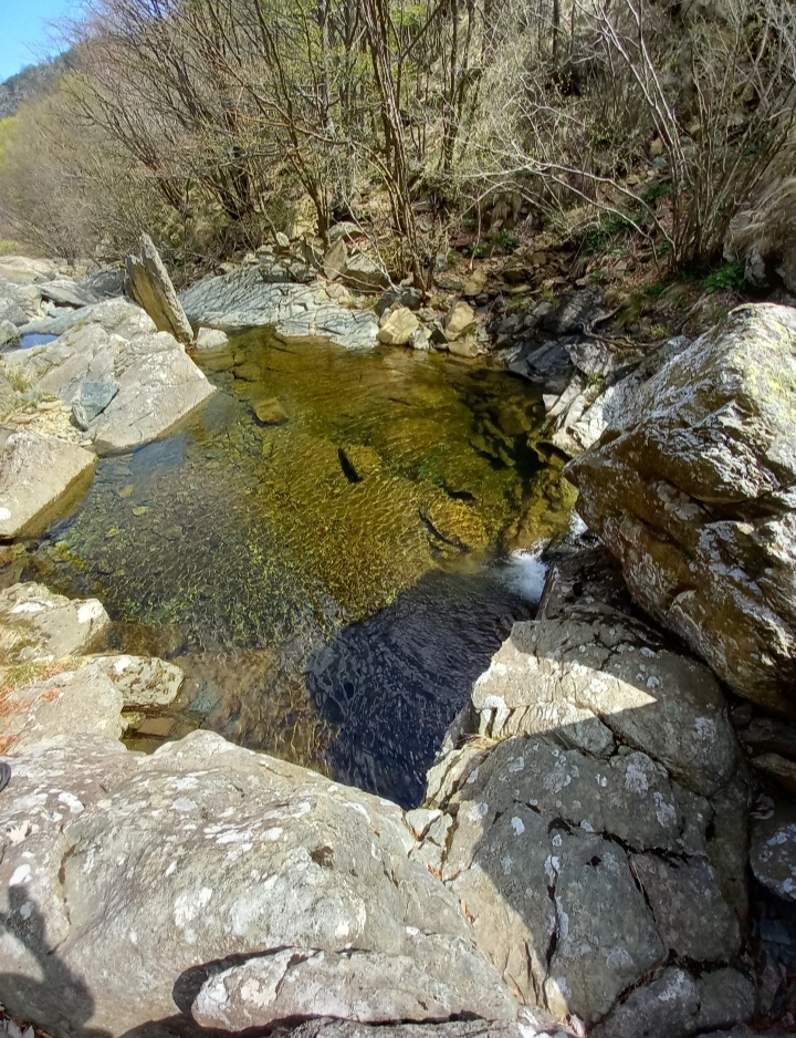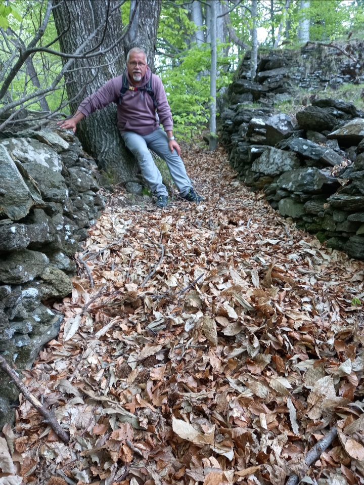 Impietoso pensare a quando giovinetto, saltavo come un grillo da un sasso all’altro! Oggi prima di effettuare un guado, in te stu rian, devo valutare e ponderarne le conseguenze, in primis un bagno fuori stagione! E allora più volte mi ritrovo a cercare la sponda amica e proseguire a discendere u rian da Biscia fra gli alberi. Cesco è più agile di me e in questo ambiente, avanza senza difficoltà.