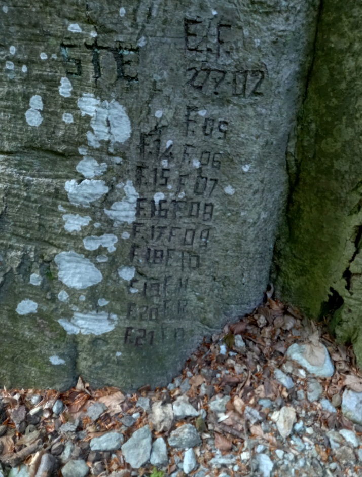 Oggi per un sopraggiunto senso civico ( e multe) sembra sia passato di moda incidere i propri nomi sui tronchi. Ma non si può far a meno di pensare chi erano le persone che molti anni fa, hanno lasciato qui un segno del loro passaggio, in questo posto e in questo mondo.