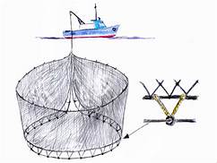 La rete per questo tipo di pesca ha dimensioni molto grandi, la sua altezza, varia dai trenta ai settanta metri e la lunghezza può superare i duecento metri.