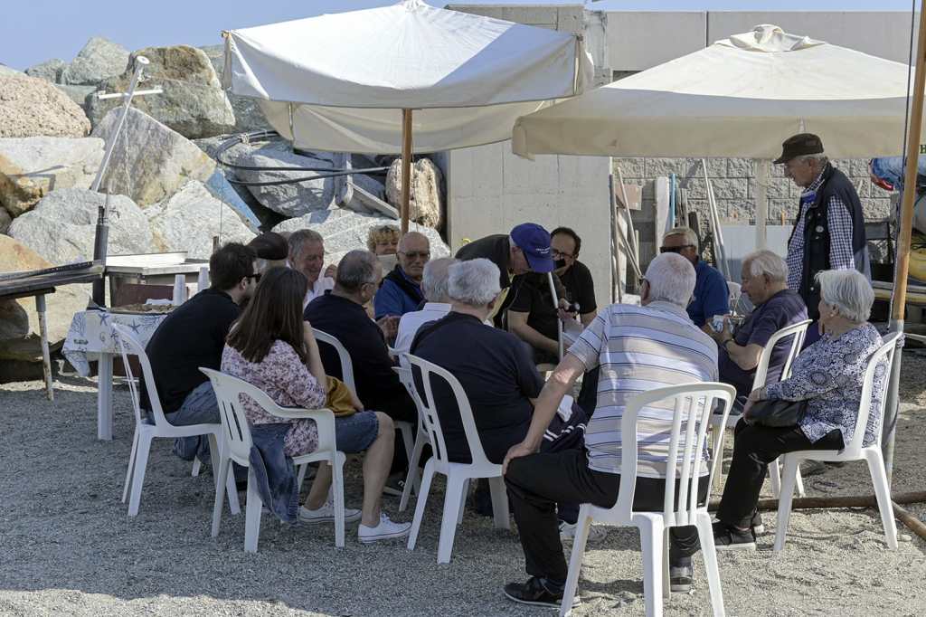L’ospite d’onore u l’è u Ghisu, cunusciu anche cumme Gianni u pescou, al secolo Ghiso Giobatta, classe 1929, accompagnato dalla figlia Mariarosa, ricevuto con affetto e applausi da tutti, in particolare dagli amici, pescatori come lui, alcuni in quiescenza, altri ancora in attività arrivati in so u portu de Vase, anche da Zena, Utri e Prà come Beppe u Faipin e Patrucco, presidente della locale Pesca Sportiva, poi a gente de Vase cun u Persegà, u Galin-na, Giambertu, Ranghettu cun l’inseparabile Cantunè, Giovanni Delfino già scindicu de Vase e u Gabriele, non mancano le belle signore, mogli, amiche, parenti, che fanno cerchio intorno ai pescuei.