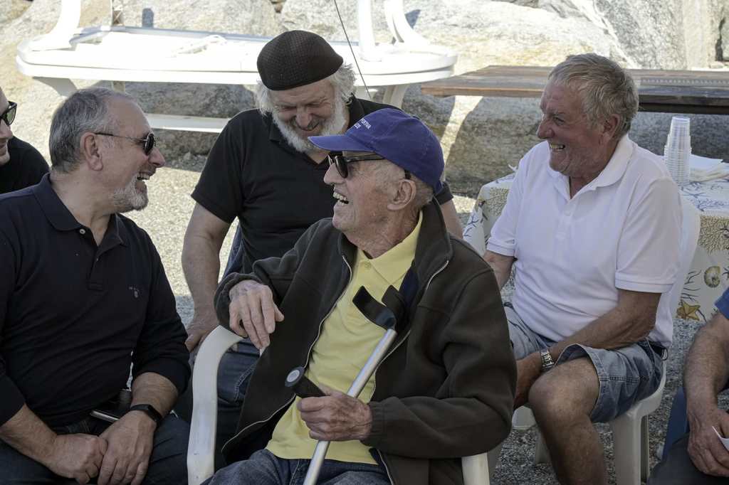 Gianni u pescou, sorridente, saluta tutti, è stato bello ritrovarsi insieme, quattru pescuei sutta n’umbrellun e per noi tutti è stato bello condividere con loro, questo momento di affetto e di amicizia.