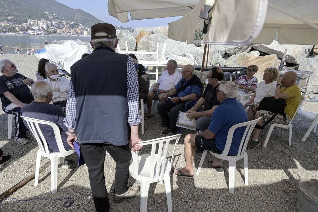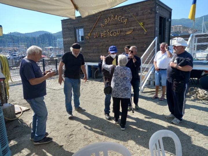 I giorni seguenti, è stato tutto un susseguirsi di telefonate, per organizzare l’incontro e così il 10 maggio alle ore 16, eravamo almeno una ventina, le persone ospitate sotto gli ombrelloni cun i pe in ta sabbia, viscin a Baracca du Pescou, presso l’Associazione Pesca Sportiva di Varazze.