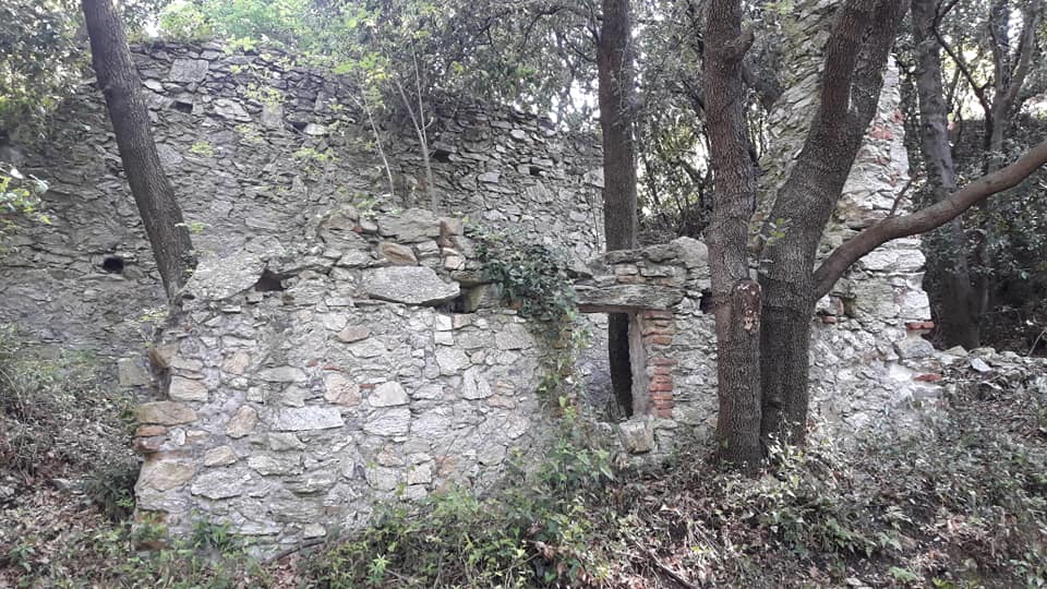 Continuando la strada, sempre in discesa e accompagnato da Stefano, ho potuto visitare i ruderi che vedete nelle foto, appartenenti ad una costruzione di discreta fattura e imponenza, l’edificio diruto, ha probabilmente subito nel tempo delle modifiche, ma vista la posizione dominante e in vista del colle di S Donato, poteva essere un punto di controllo, molto probabilmente una stazione di posta e dogana per merci e persone che transitavano verso il Castrum Romano e poi Ad Navalia.