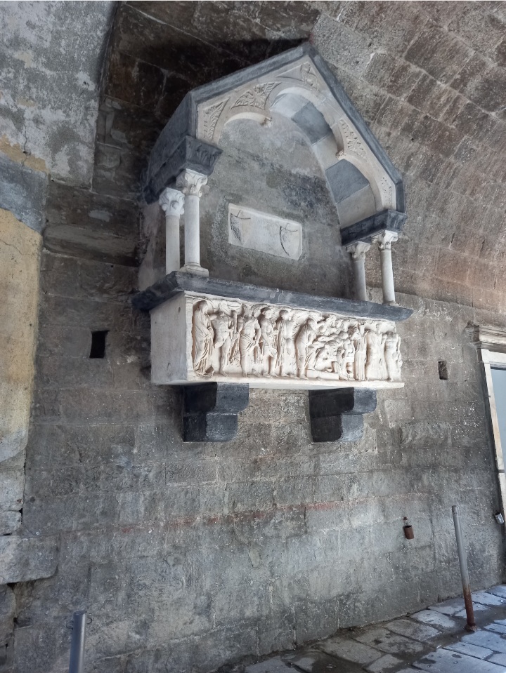 Altri caruggi ora a sinistra della cattedrale, verso le vie più famose Luccoli, Orefici, S.Luca, Pre, via del Campo, molte le storie curiose, sconosciute, come questo sarcofago
