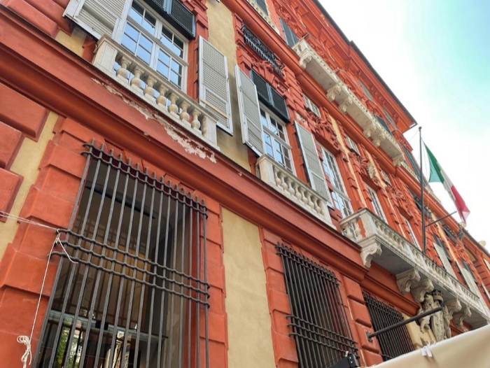La prospettiva dei Palazzi dei Rolli, con il contrasto cromatico di Palazzo Rosso.