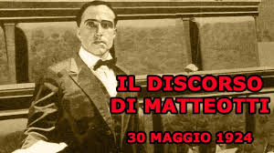 “Voi volete rigettare il paese indietro, verso l’assolutismo. Noi difendiamo la libera sovranità del popolo italiano, al quale rivolgiamo il nostro saluto e del quale salvaguarderemo la dignità domandando che si faccia luce sulle elezioni. (In piedi la sinistra acclama Matteotti. A destra si grida: – Venduto! Traditore! Provocatore!). – E adesso – dice sorridendo Matteotti, ai suoi amici – potete preparare la mia orazione funebre”.