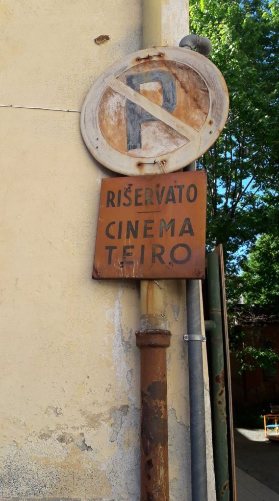 Il Cine Teiro e l’omologo estivo all’aperto, era ricavato in uno spiazzo sottostante il viadotto ferroviario, che scavalca l’alveo del Teiro, dove ora c’e’ il parcheggio della Conad.