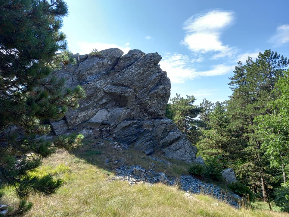 U l’e’ u Grupasso, così denominato, per la presenza, di un’enorme formazione rocciosa, che si intravvede oltre la fustaia degli abeti.