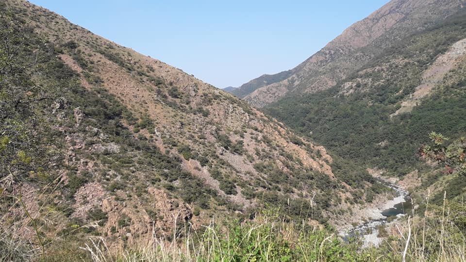 Il paesaggio si fa brullo, la strada scende al guado del Gorzente e da qui riprende quota, al cospetto dello scosceso monte Tobbio.