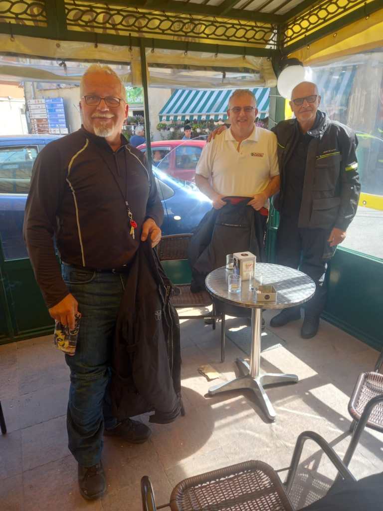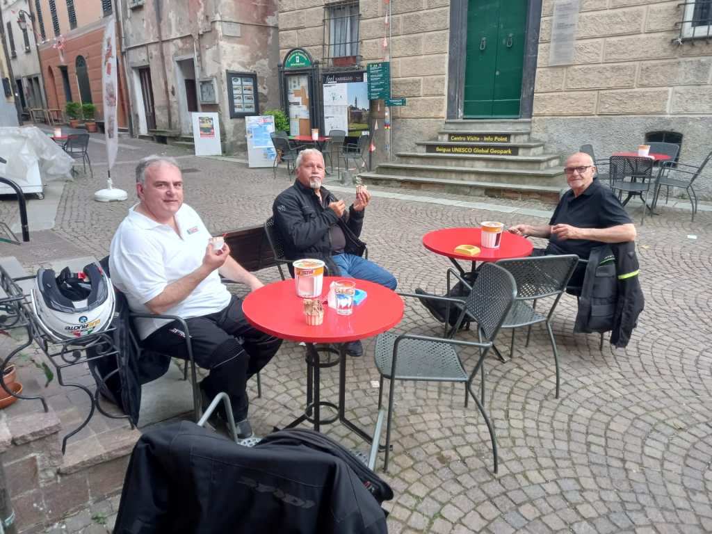 Bellugiu, con Ettore Franco e Giampy che salutiamo al bivio del Salto, lui prosegue verso Albisola, sul monitor della sua BMW è segnato tutto il rendiconto della giornata, 14 ore di viaggio, di cui il 50% in sella e l’altro 50% a motori spenti, dove sono comprese le pause per pranzo, caffè, bibite, gelato, foto e un paio di pisciate a testa.