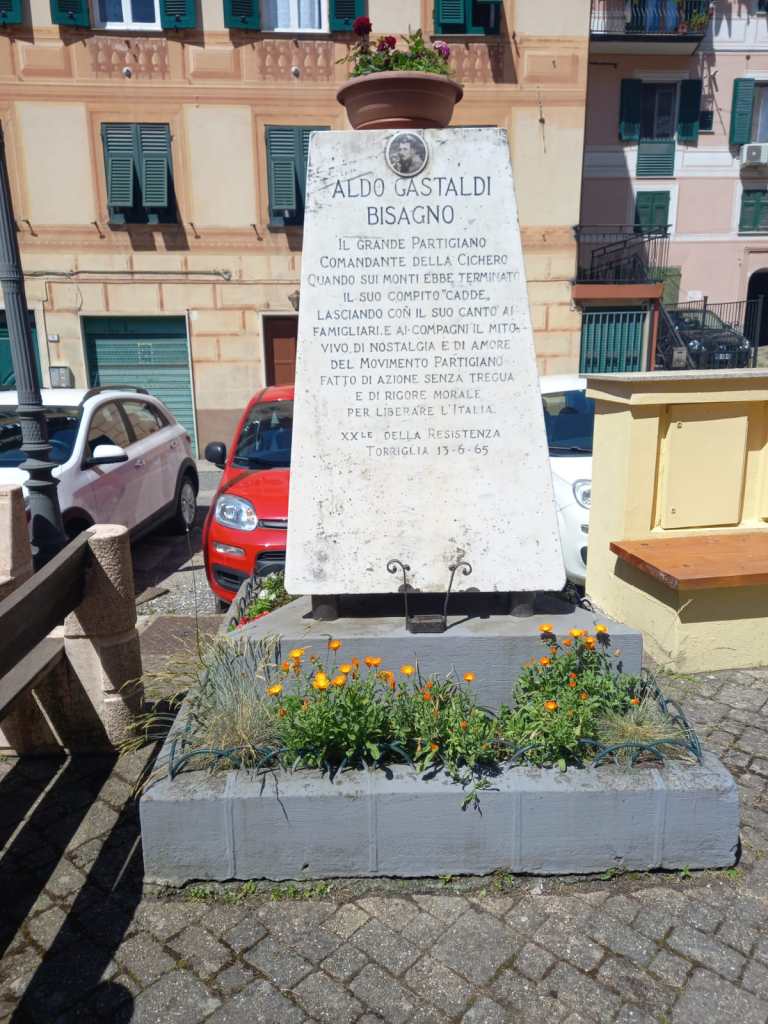 In una piazza una lapide ricorda il partigiano “Bisagno” Aldo Gastaldi