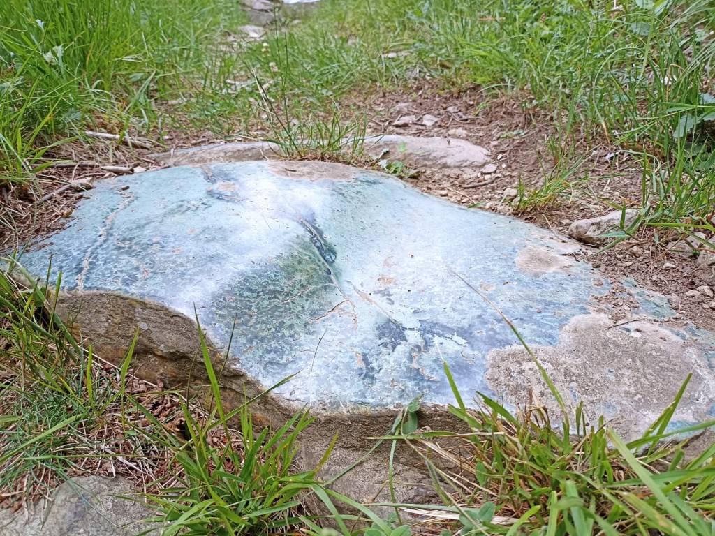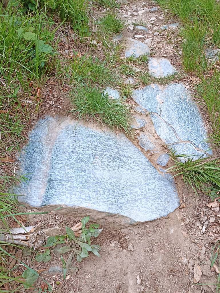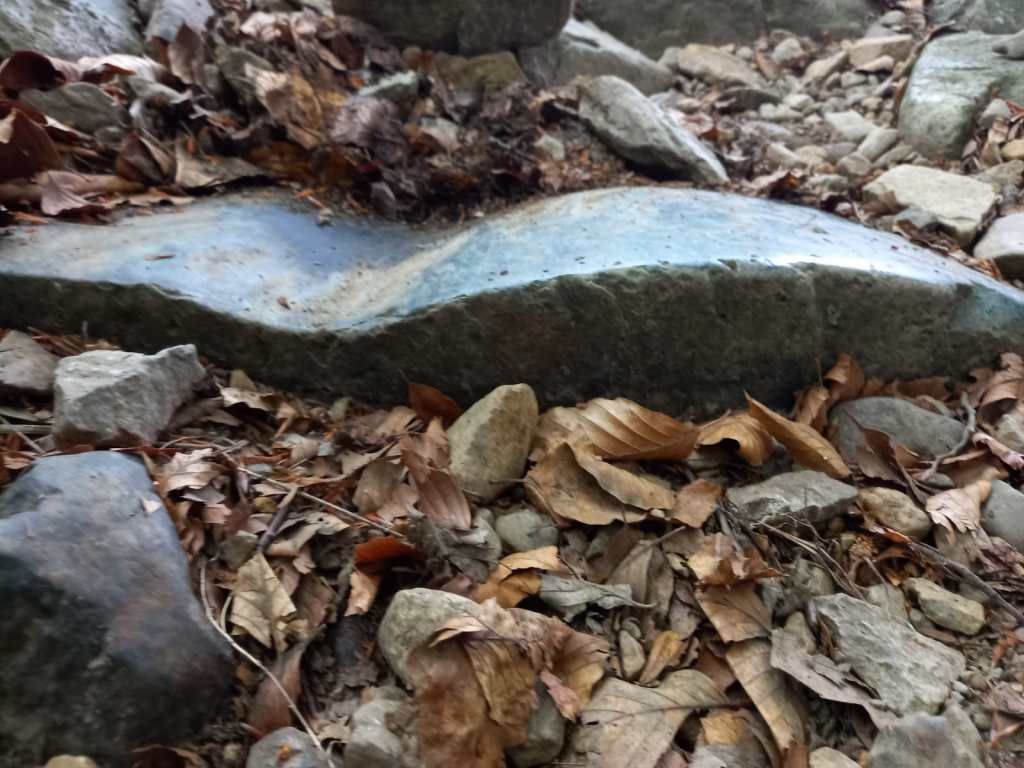 E’ incredibile la perfetta lucidatura di queste pietre, dovuta al consumo, operato da secoli di andirivieni a piedi, cun bo e lese, i buoi con i loro carichi di tavolame sulle slitte, che hanno spianato le asperità ed estratto dalla massa litica e reso fruibili alla vista, le bellissime venature marmoree, dalle molteplici sfumature verde azzurro.