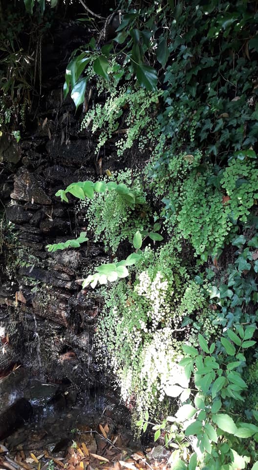 L’ambiente è quello del nostro entroterra, alle falde meridionali dei bricchi, che degradano dal Beigua, l’acqua sgorga da ogni fessura, riempie grandi vasche di raccolta e scorre in alcuni ruscelli con bellissimi esemplari di capelvenere.