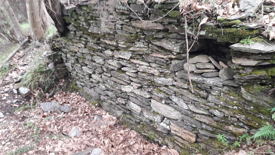 A questo punto ci addentriamo nel bosco, fra eriche arboree alberi di pini e castagni, che sovrasta la sottostante zona de Ca-dana, per vedere un bellissimo esempio di muro a secco edificato con e Prie Sciappe’.