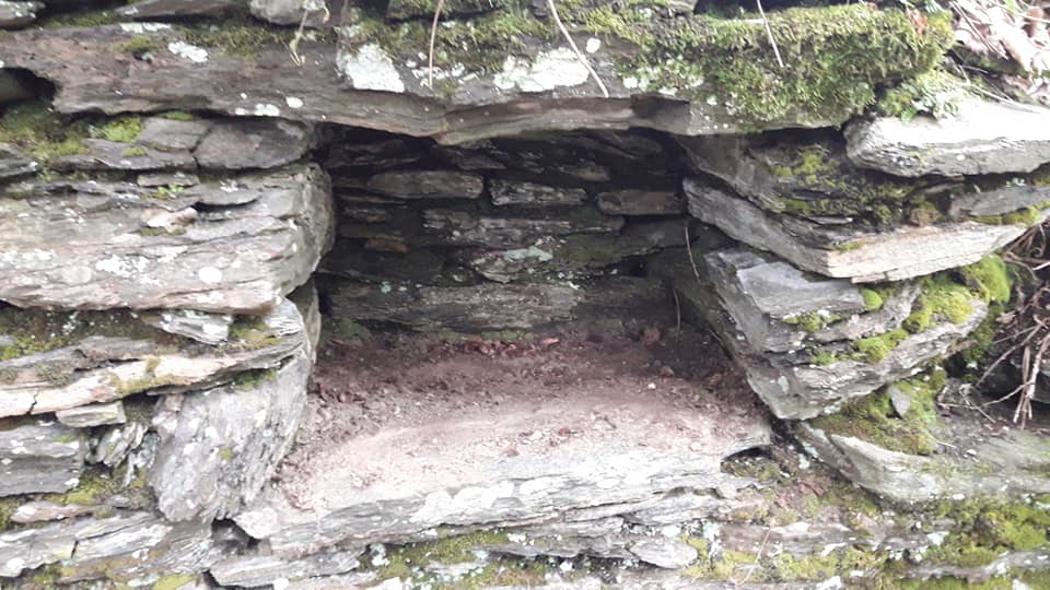 A lato di questa parete, un incavo come quelli per lume che si trovano all’interno delle cascine in pietra. In un pianoro, dove era un’antica cava si può scorgere in lontananza il mare.