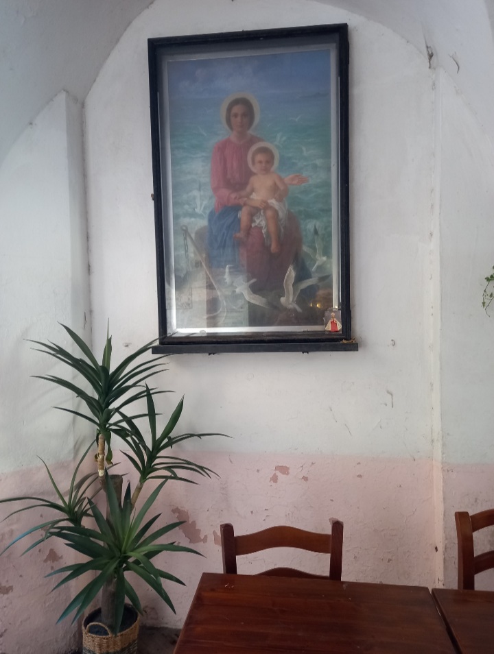l pittore che lo dipinse è Amorico, la Madonna ha come modella mia cugina Mari e i piedini di Gesù, sono i miei!