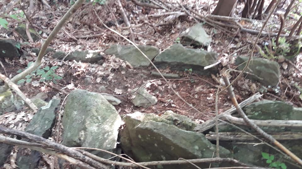 Peccato per il sole che crea isole di luce e confonde i contorni delle cose da vedere in foto. Appena sopra a Muntà da Cappelletta si trova una cosa insolita, un gigantesco ciappun de pria, uno scivolo naturale , stranamente delimitato nella parte bassa da un muro di notevole spessore, forse eretto per dare stabilità al megalite, oppure molto probabilmente per chiudere la cavità, che formava la grossa pietra, e creare, un riparo sotto roccia, la cui entrata, laterale oggi è occlusa dalla terra, altre dimore dello stesso tipo sono nella zona soprastante, detta delle Agugiaie.