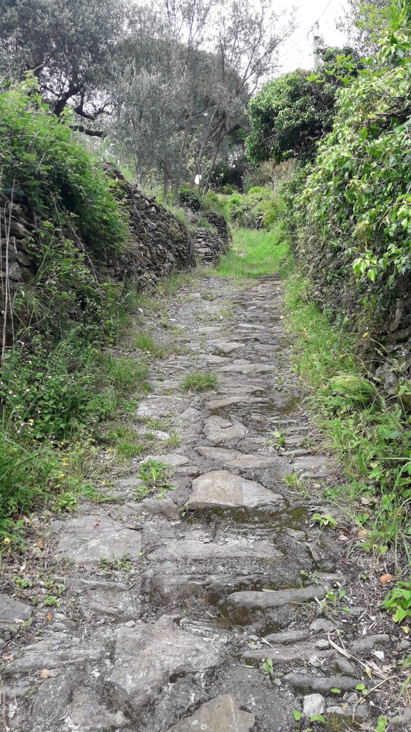 In questo tratto di strada, sul selciato, c’è una delle meraviglie del nostro monte, la memoria incisa sulle pietre di ofiolite, di chi, nel corso dei secoli, contribuì in modo massivo alla grandezza della cantieristica varazzina.