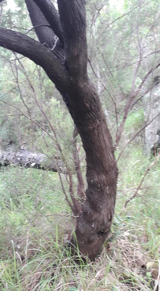 Gianluca mi fa notare un gruppo di alberi, che hanno letteralmemnte “camminato” verso valle per un centinaio di metri, per poi fermarsi e formare un boschetto, questa parte di frana, pur essendo molto vistosa, non è quella che ha provocato il disastro.