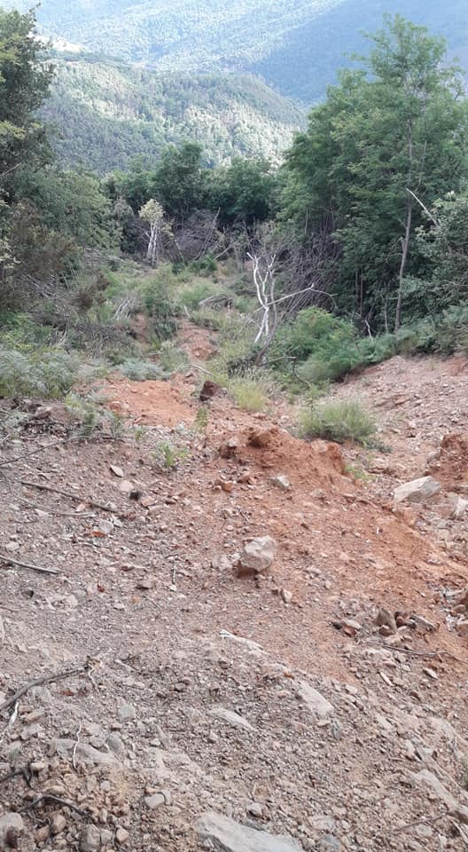In un determinato punto è visibile lo strato di roccia, molto acclive, che ha fatto da scivolo naturale a questo enorme smottamento.