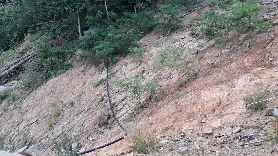 Lungo la stessa direttrice, oltrepassato un’altro boschetto, c’è stato il secondo fatale distacco, composto da terra e fango e grandi massi che hanno tranciato la tubazione dell’acquedotto.