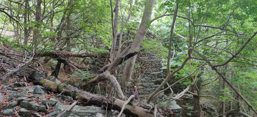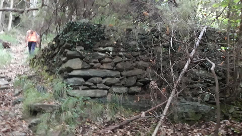 A questo punto con Gianluca facciamo una constatazione di fatto, poco sopra a Ca di Scopellin, c’è il punto di distacco, del terzo movimento franoso, che anche qua ha divelto piante e fatto rotolare massi, un seppu de castagnu, e’ stato capovolto e trasportato a poca distanza dal rudere