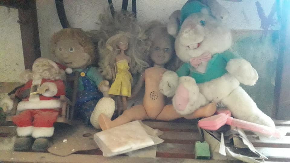 Ma questi peluche e queste bambole, sono gli ultimi “abitanti” del complesso delle ex Colonie Bergamasche e si sono rifugiati in un capanno, immerso nel parco, forse per cercare di evitare una triste fine.